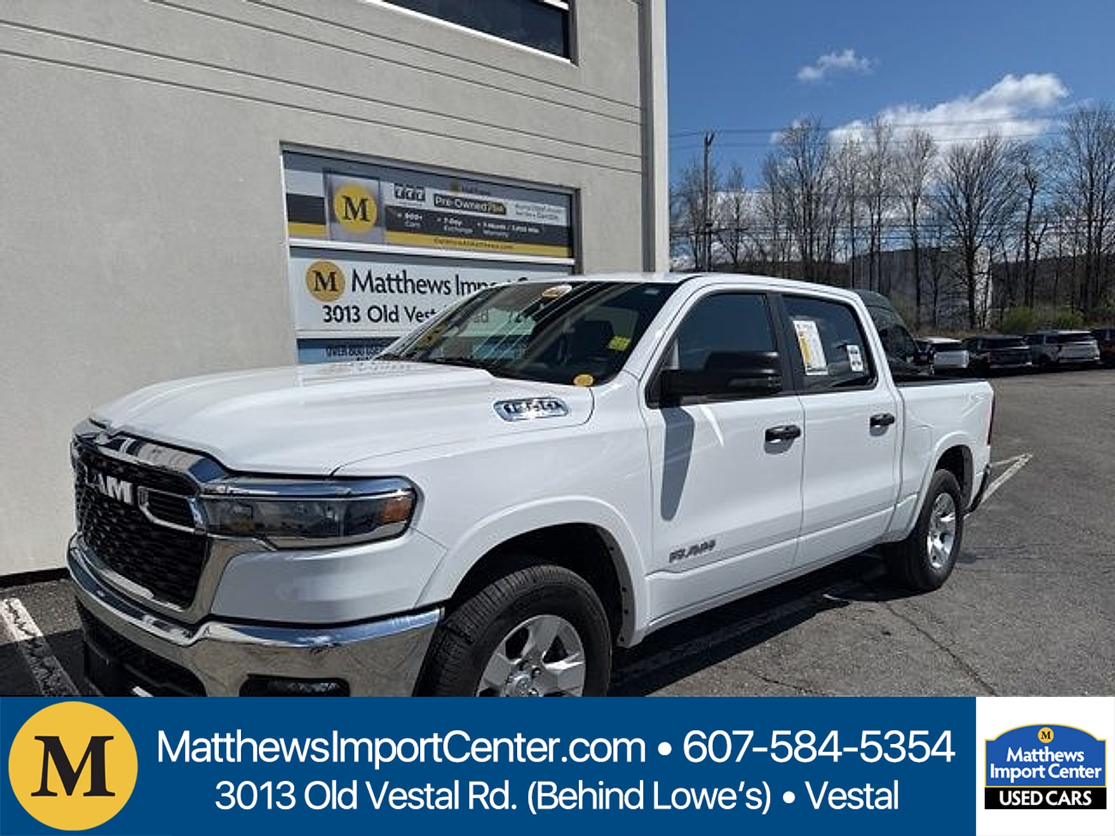 Mileage: 42,247 miles miles, MPG Range: 19/24 mpg, Engine: 3.0L i-6, Transmission: Automatic, Drive Line: 4WD, Exterior Color: Bright White, Interior Color: Black,Stock #: A5118Z, Location: Matthews Kia, Comments: Matthews Import Center promises each customer a thorough and confident 120-point inspection on our used inventory guaranteeing a relaxing and peace-of-mind experience. We are located behind Lowes in Vestal NY. Or call us at (607) 729 - 6261Matthews Import Center3013 Old Vestal RoadVestal NY 13850. Bright White Clearcoat 2025 Ram Big Horn/Lone Star 1500 4WD 8-Speed Automatic 3.0L I6