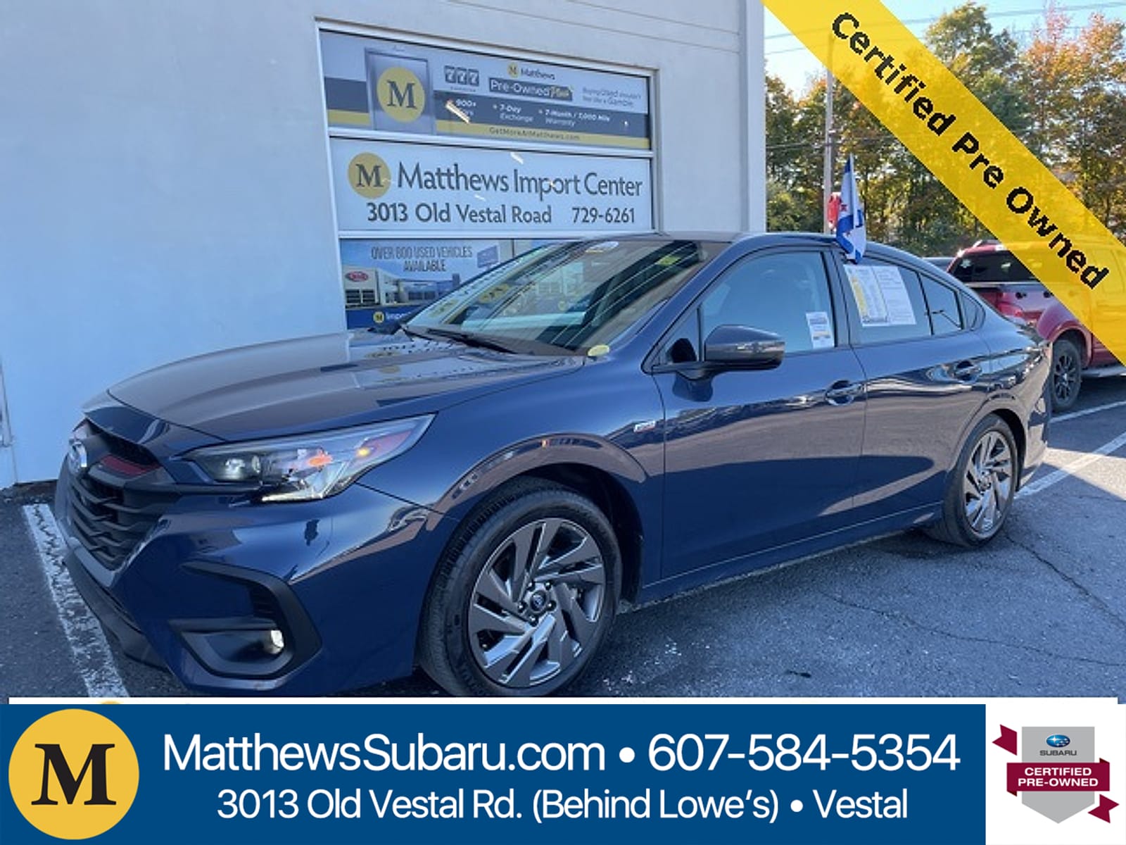 Mileage: 21,119 miles miles, MPG Range: 23/31 mpg, Engine: 2.4L i-4, Transmission: Automatic, Drive Line: AWD, Exterior Color: Cosmic Blue Pearl, Interior Color: Two-Tone Black/Gray,Stock #: A4725Z, Location: Matthews Kia, Comments: Matthews Import Center promises each customer a thorough and confident 120-point inspection on our used inventory guaranteeing a relaxing and peace-of-mind experience. We are located behind Lowes in Vestal NY. Or call us at (607) 729 - 6261Matthews Import Center3013 Old Vestal RoadVestal NY 13850. Certified. Cosmic Blue Pearl 2023 Subaru Sport Legacy AWD Lineartronic CVT 2.4L 4-Cylinder DOHC 16V23/31 City/Highway MPGSubaru Certified Pre-Owned Details: * Vehicle History * Powertrain Limited Warranty: 84 Month/100000 Mile (whichever comes first) from original in-service date * Transferable Warranty * Warranty Deductible: $0 * Roadside Assistance * SiriusXM 3-Month trial subscription $500 Owner Loyalty coupon & 1 year trial subscription to STARLINK * 152 Point Inspection