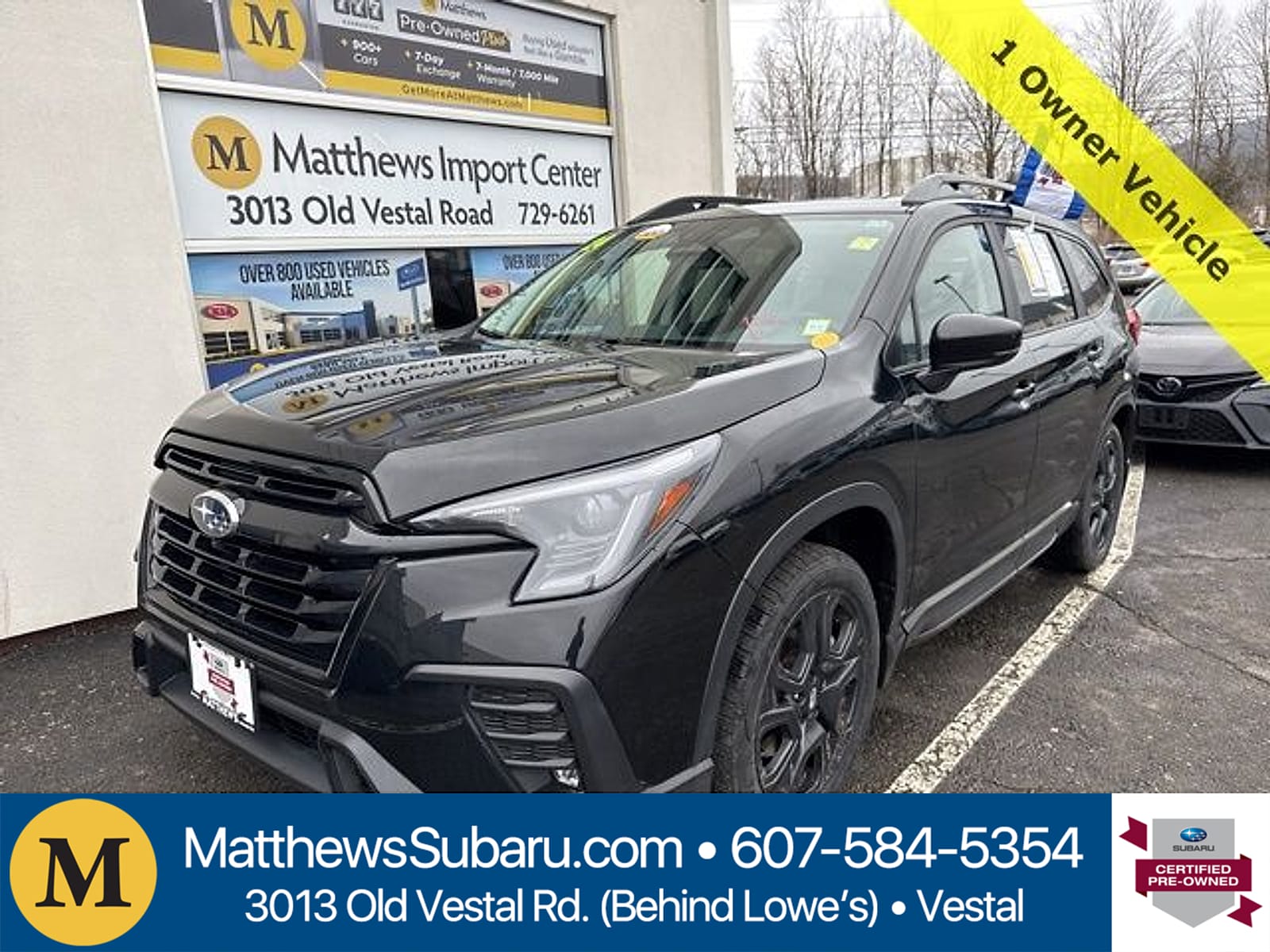 Mileage: 11,287 miles miles, MPG Range: 19/25 mpg, Engine: 2.4L i-4, Transmission: Automatic, Drive Line: AWD, Exterior Color: Crystal Black Silica, Interior Color: Gray,Stock #: A4980V, Location: Matthews Kia, Comments: Matthews Import Center promises each customer a thorough and confident 120-point inspection on our used inventory guaranteeing a relaxing and peace-of-mind experience. We are located behind Lowes in Vestal NY. Or call us at (607) 729 - 6261Matthews Import Center3013 Old Vestal RoadVestal NY 13850. Certified. Crystal Black Silica 2024 Subaru Onyx Edition Ascent AWD Lineartronic CVT 2.4L 4-Cylinder DOHC 16VOdometer is 16430 miles below market average!Subaru Certified Pre-Owned Details: * Warranty Deductible: $0 * Powertrain Limited Warranty: 84 Month/100000 Mile (whichever comes first) from original in-service date * Roadside Assistance * Vehicle History * 152 Point Inspection * Transferable Warranty * SiriusXM 3-Month trial subscription $500 Owner Loyalty coupon & 1 year trial subscription to STARLINK