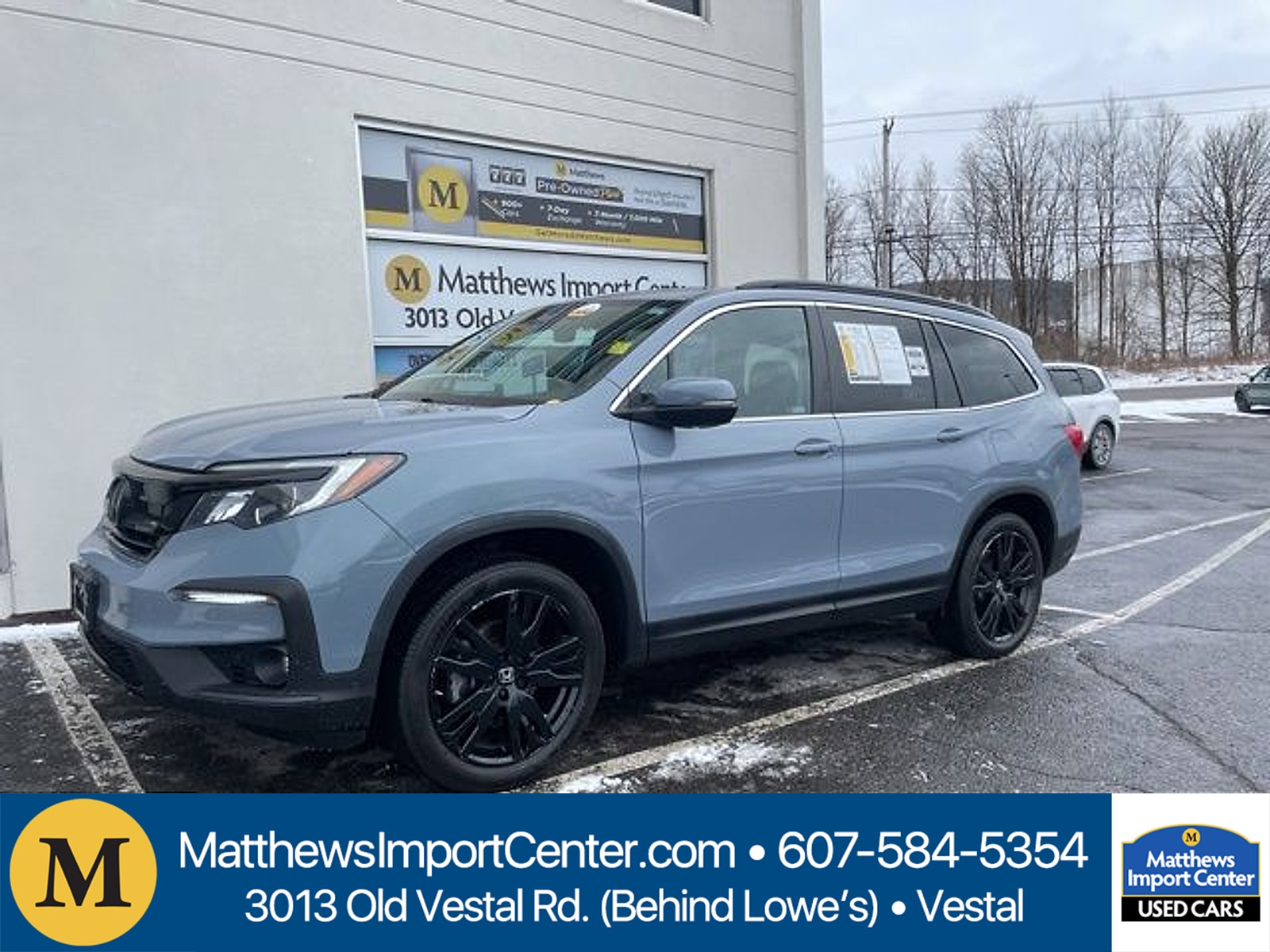 Mileage: 47,422 miles miles, MPG Range: 19/26 mpg, Engine: 3.5L V-6, Transmission: Automatic, Drive Line: AWD, Exterior Color: Steel Sapphire, Interior Color: Black,Stock #: A4885Z, Location: Matthews Kia, Comments: Matthews Import Center promises each customer a thorough and confident 120-point inspection on our used inventory guaranteeing a relaxing and peace-of-mind experience. We are located behind Lowes in Vestal NY. Or call us at (607) 729 - 6261Matthews Import Center3013 Old Vestal RoadVestal NY 13850. Blue 2022 Honda Special Edition Pilot AWD 9-Speed Automatic 3.5L V6 24V SOHC i-VTECOdometer is 10689 miles below market average! 19/26 City/Highway MPG