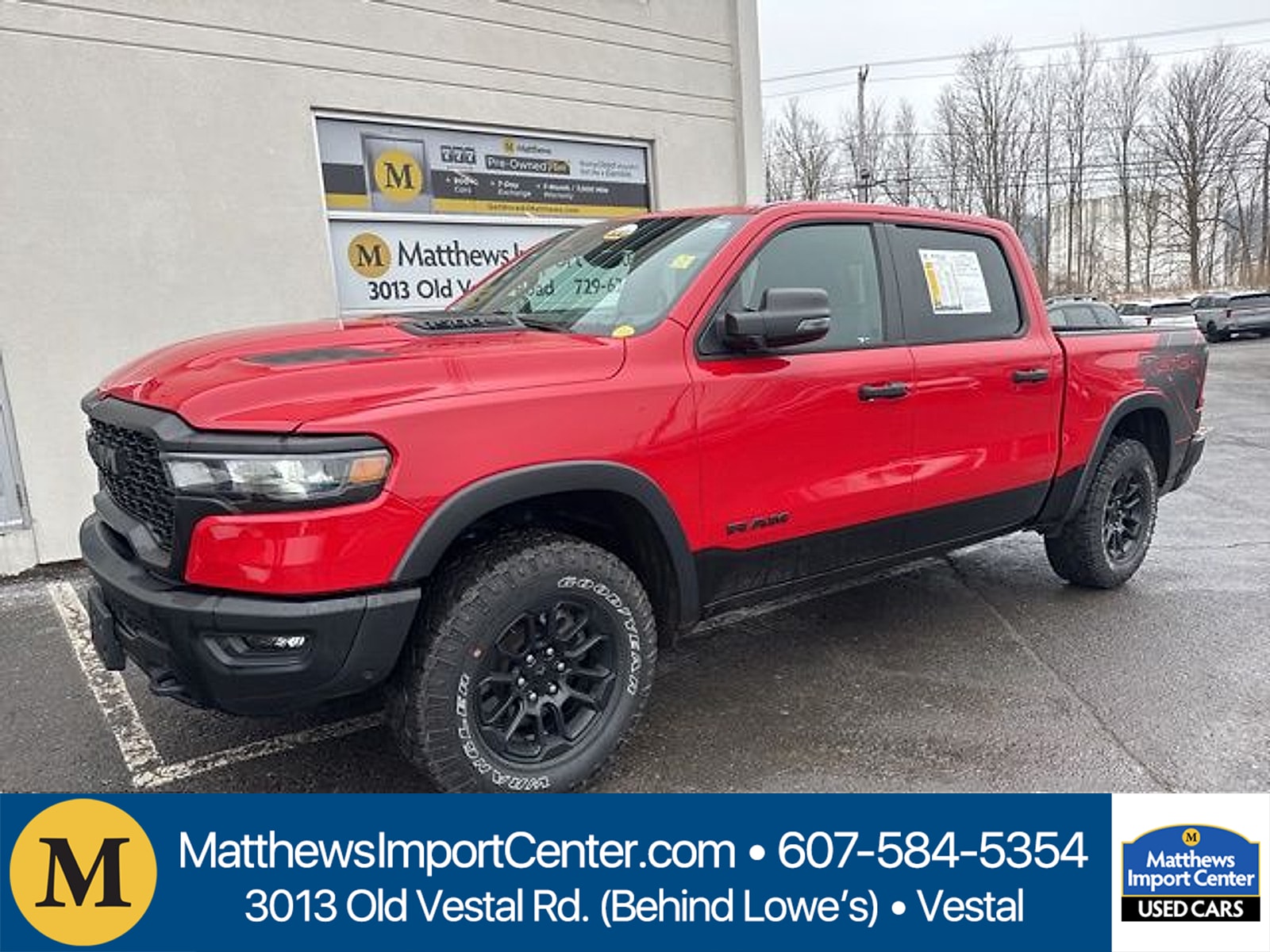 Mileage: 26,428 miles miles, MPG Range: 17/24 mpg, Engine: 3.0L i-6, Transmission: Automatic, Drive Line: 4WD, Exterior Color: Flame Red Clearcoat, Interior Color: Black,Stock #: A4955Z, Location: Matthews Kia, Comments: Matthews Import Center promises each customer a thorough and confident 120-point inspection on our used inventory guaranteeing a relaxing and peace-of-mind experience. We are located behind Lowes in Vestal NY. Or call us at (607) 729 - 6261Matthews Import Center3013 Old Vestal RoadVestal NY 13850. Flame Red Clearcoat 2025 Ram Rebel 1500 4WD 8-Speed Automatic 3.0L I6Awards: * Motor Trend Automobiles of the year