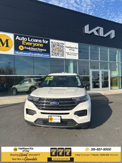 Mileage: 45,661 miles miles, MPG Range: 20/27 mpg, Engine: 2.3L i-4, Transmission: 10-Speed Automatic, Drive Line: 4WD, Exterior Color: Star White Metallic Tri-Coat, Interior Color: Ebony,Stock #: KC5272A, Location: Matthews Kia of Clay, Comments: Adventure-ready and family-friendly, this 2023 Ford Explorer XLT 4WD offers space, power, and modern tech. With 45,661 miles, it features a turbocharged 2.3L EcoBoost engine, 4WD capability, 3rd-row seating, and advanced safety features like blind spot monitoring and lane-keep assist. Enjoy comfort and connectivity with a large touchscreen, Apple CarPlay/Android Auto, and tri-zone climate control.