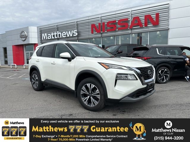 Mileage: 47,894 miles miles, MPG Range: 28/35 mpg, Engine: 1.5L i-3, Transmission: Variable, Drive Line: AWD, Exterior Color: Pearl White Tricoat, Interior Color: Charcoal,Stock #: CU4558L, Location: Matthews Nissan of Clay, Comments: Certified. Pearl White 2023 Nissan Rogue SV AWD CVT with Xtronic 1.5L I3 Turbocharged DOHC 12V LEV3-ULEV50 201hp **NON SMOKER**, **RECENT OIL CHANGE**, **LOW MILEAGE**, AWD, Heated Driver & Front Passenger Seats, Heated Leather Wrapped Steering Wheel, Leatherette Door Trim Inserts w/Stitch, Panoramic Moonroof, Power Liftgate, PRIMATEX Leatherette Seat Trim, Rear Door Sunshades, Rear Personal Lights, Security Alarm, Silver Painted Roof Rails, SV Premium B Package.