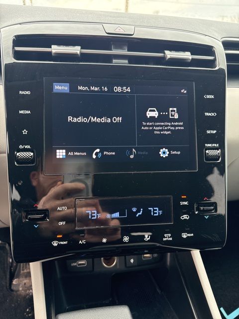 Dark Gray Metallic 2024 Hyundai Tucson SEL AWD 8-Speed Automatic with SHIFTRONIC 2.5L I4 DGI DOHC 16V LEV3-SULEV30 187hp AWD, 3.648 Axle Ratio, 4-Wheel Disc Brakes, 6 Speakers, ABS brakes, Air Conditioning, Alloy wheels, AM/FM radio: SiriusXM, Apple CarPlay & Android Auto, Auto High-beam Headlights, Automatic temperature control, Brake assist, Bumpers: body-color, Cargo Net, Carpeted Floor Mats, Delay-off headlights, Driver door bin, Driver vanity mirror, Dual front impact airbags, Dual front side impact airbags, Electronic Stability Control, Exterior Parking Camera Rear, Four wheel independent suspension, Front anti-roll bar, Front Bucket Seats, Front Center Armrest, Front dual zone A/C, Front reading lights, Fully automatic headlights, Heated door mirrors, Heated Front Bucket Seats, Heated front seats, Illuminated entry, Low tire pressure warning, Occupant sensing airbag, Option Group 01, Outside temperature display, Overhead airbag, Overhead console, Panic alarm, Passenger door bin, Passenger vanity mirror, Power door mirrors, Power driver seat, Power Liftgate, Power steering, Power windows, Radio data system, Radio: AM/FM/HD Audio System, Rear anti-roll bar, Rear seat center armrest, Rear side impact airbag, Rear window defroster, Rear window wiper, Remote keyless entry, Roof rack: rails only, Security system, Speed control, Split folding rear seat, Spoiler, Stain & Odor Resistant Cloth Seat Trim, Steering wheel mounted audio controls, Tachometer, Telescoping steering wheel, Tilt steering wheel, Traction control, Trip computer, Variably intermittent wipers.