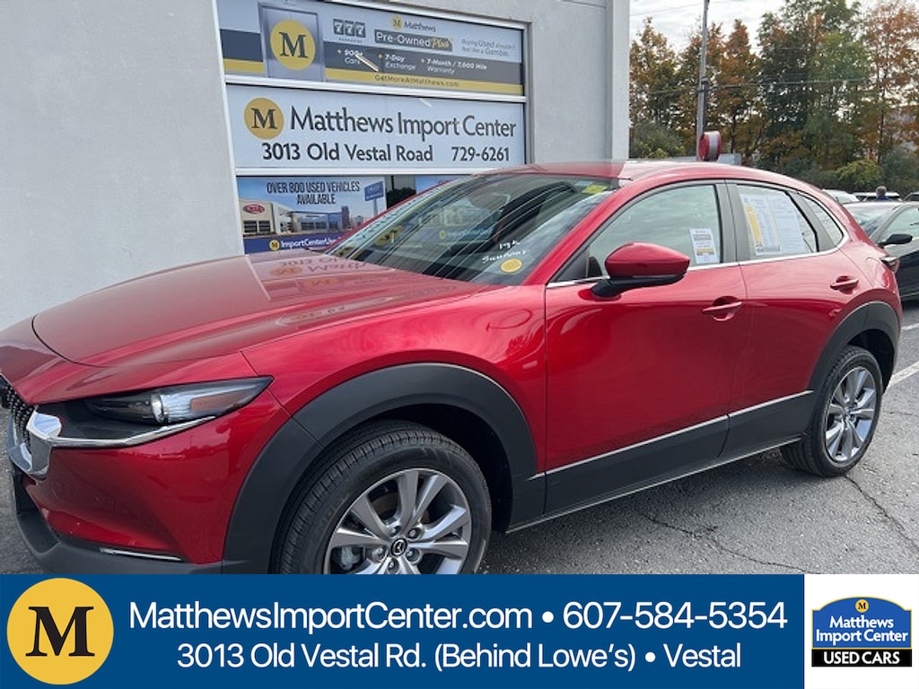 Matthews Import Center promises each customer a thorough and confident 120-point inspection on our used inventory guaranteeing a relaxing and peace-of-mind experience. We are located behind Lowes in Vestal NY. Or call us at (607) 729 - 6261Matthews Import Center3013 Old Vestal RoadVestal NY 13850. Soul Red Crystal Metallic 2021 Mazda Preferred CX-30 AWD 6-Speed Automatic I424/31 City/Highway MPG